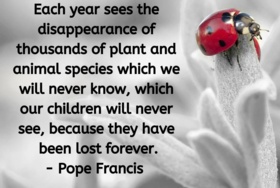 Read more"Each year see the disappearance of plants and animals species which we will never know, which our children will never see, because they have been lost forever." - Pope Francis
